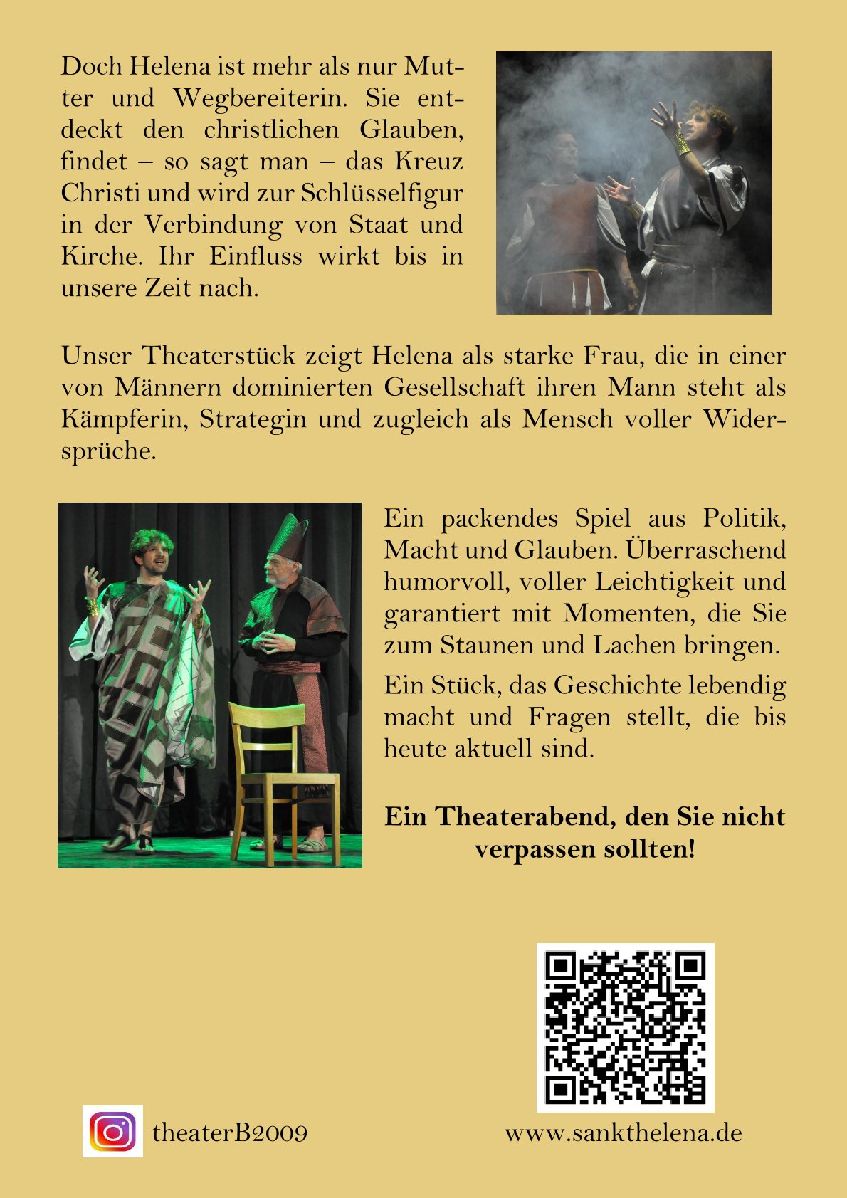 Da aus historischen Quellen nur wenig über die Kaiserin Helena bekannt ist, wurde ihre Biografie für dieses Theaterstück erweitert. So erzählt das Stück vieles über die Geschichte jener Zeit, u. a. über das Konzil von Nizäa, das vor 1.700 Jahren stattgefunden hat – ein Jubiläum, das im Jahr 2025 gefeiert worden ist.