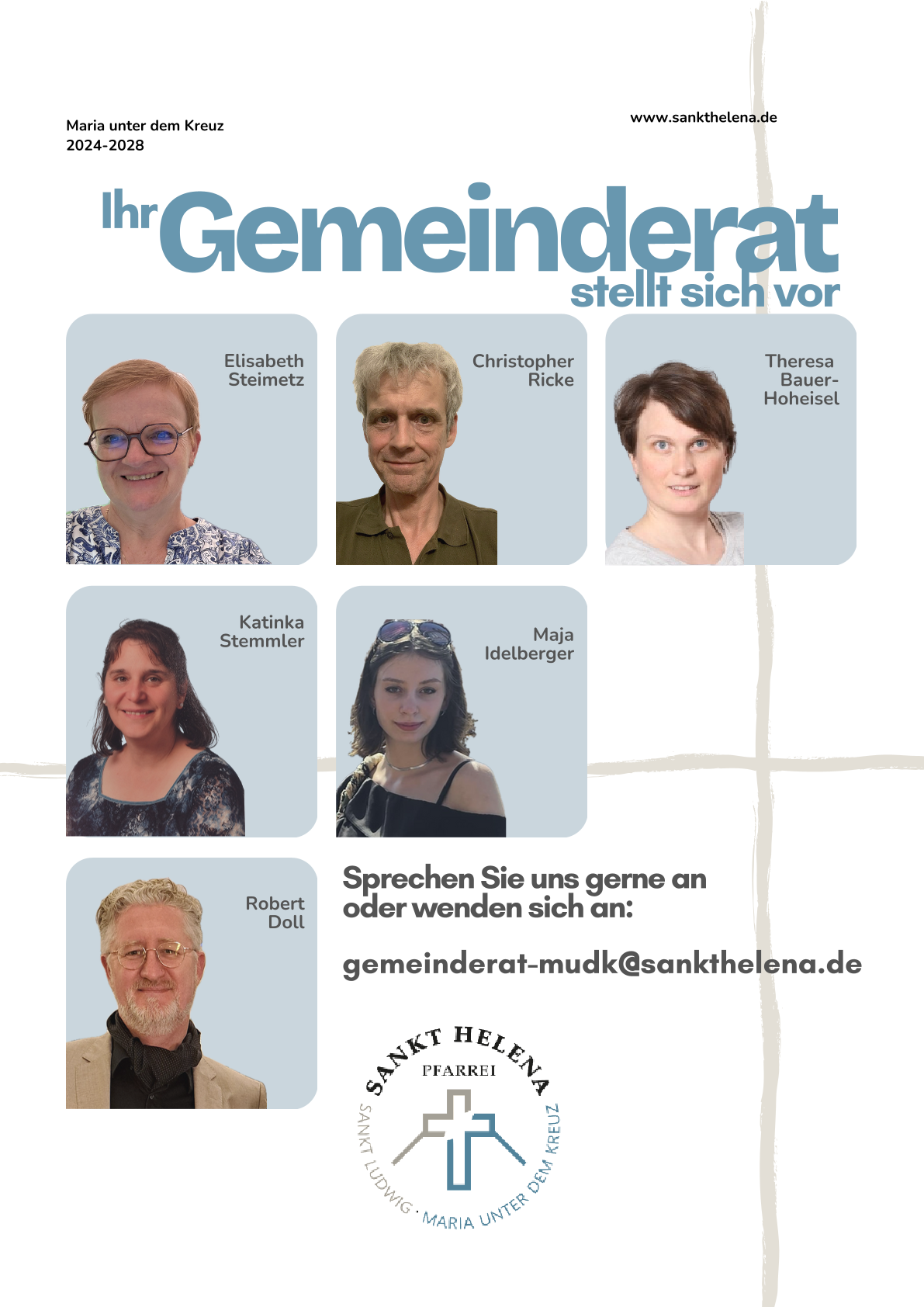 Anlässlich der Fusion der bisherigen Pfarreien Maria unter dem Kreuz (MudK) und Sankt Ludwig zur gemeinsamen Pfarrei Sankt Helena und den daraus resultierenden Wahlen zu den neuen Gremien, konstituierte sich der neue Gemeinderat von MudK am 3. Dezember 2023 im Gemeindehaus von Sankt Marien.